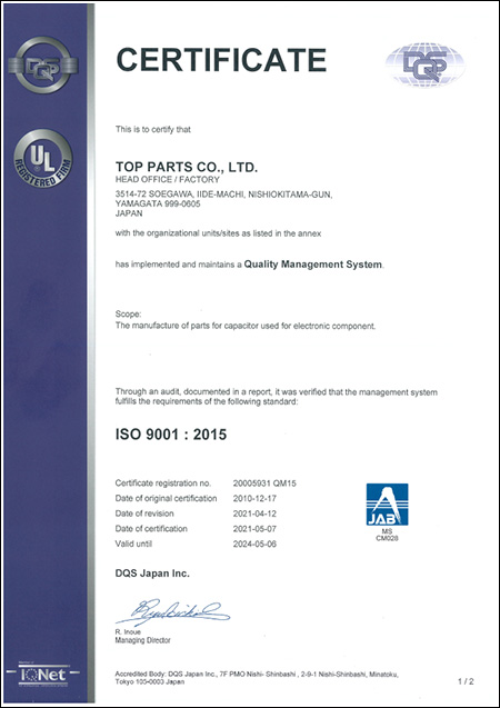 ISO9001の更新審査及びISO14001の維持審査が、3月14日~19日に無事に完了致し、新しい登録証が交付されました。
